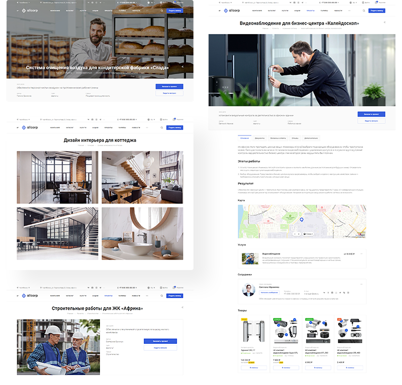 В платформе детально проработаны и представлены на выбор 8 конфигураций универсального сайта. При этом количество возможных представлений настроек приближается к бесконечности. Все это помогает закрывать реальные задачи бизнеса. Создайте сайт компании любой сферы: от инженерных систем и агентств по недвижимости до косметологии и дизайнерской мебели. Продвигайте личные услуги: юридические, бизнес-образование, курсы и другие. Или создайте сайт для промышленной компании и предлагайте оборудование.