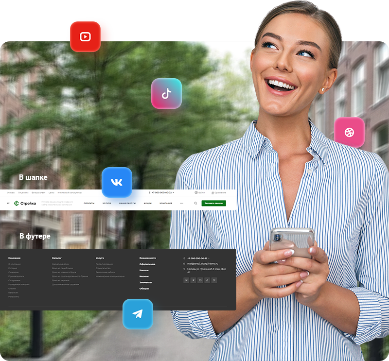 Сохраняйте фирменный стиль, запоминайтесь пользователям и влияйте на конверсию. Сайт может выглядеть стильно, даже если вы продаете металлические балки.